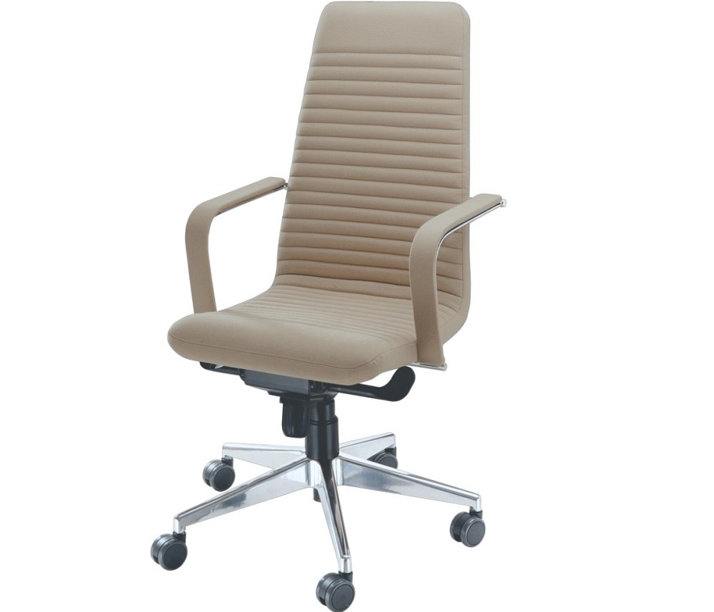 Confeccionada em concha de madeira multilaminada espessura 15mm, espuma densidade 28, braços tubo em aço carbono cromado com apoio estofado.
