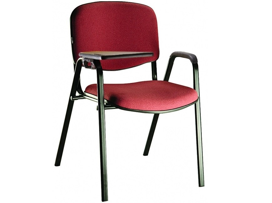 Cadeira universitária empilhável com braços e prancheta escamoteável.