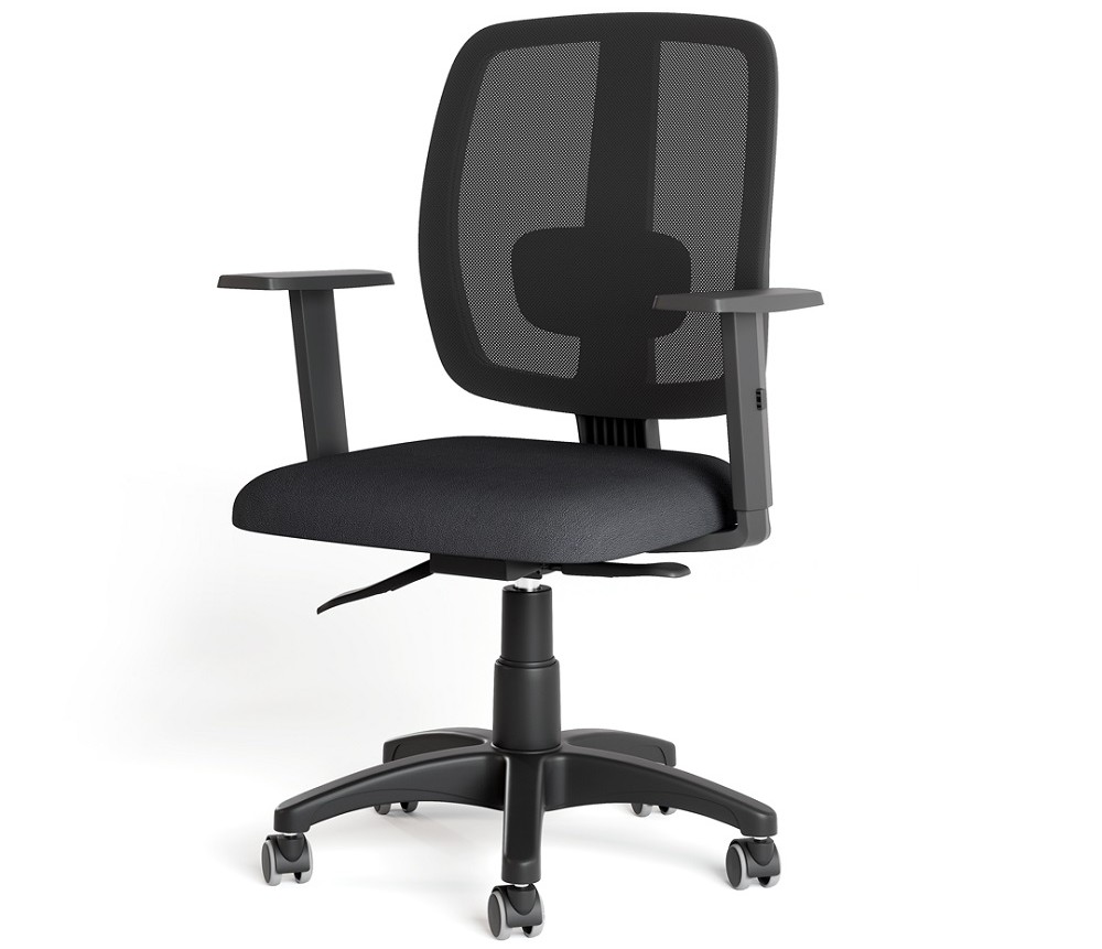 Encosto executivo em tela mesh com apoio lombar regulável.